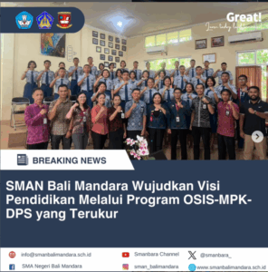 Dalam upaya memperkuat kinerja organisasi siswa dan menyiapkan program kerja yang berdampak nyata, SMA Negeri Bali Mandara menggelar Rapat Kerja Penyusunan Program OSIS-MPK-DPS di TRRC (Teaching and Research Resource Center) pada Jumat, 9 Januari 2025. Kegiatan ini diikuti oleh seluruh anggota OSIS, MPK, dan DPS, serta jajaran pimpinan sekolah dan pembina OSIS di setiap sekbid.